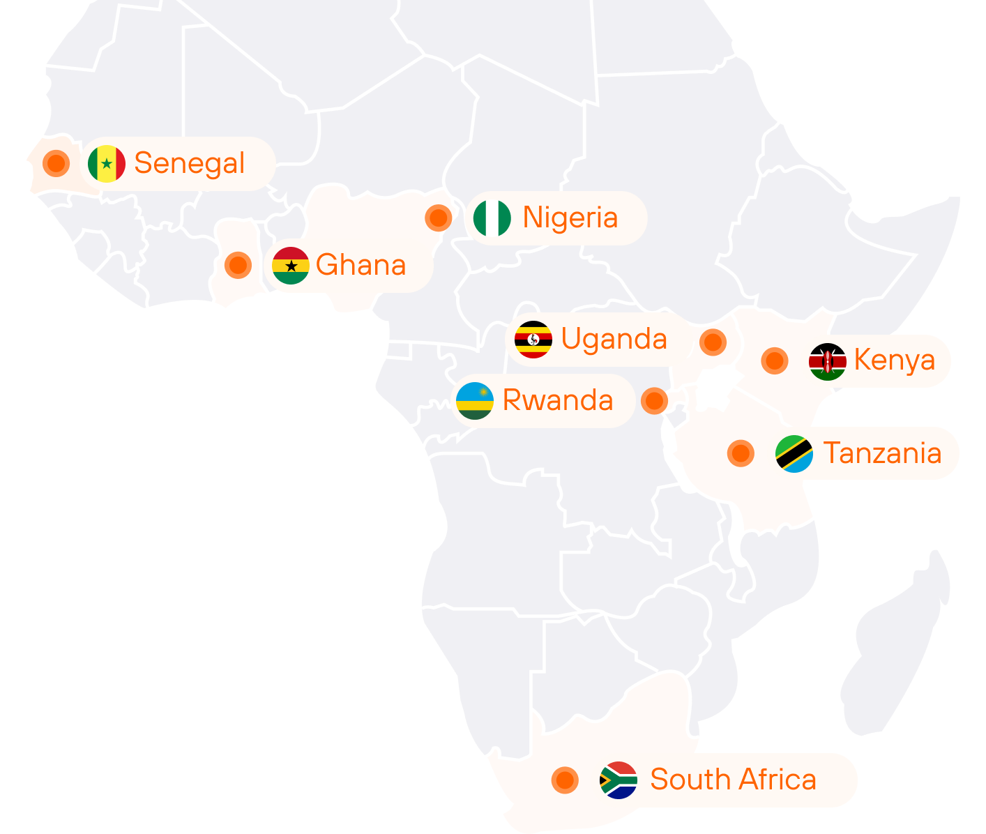 35+ African countries. One integration. Bank transfers and mobile money.